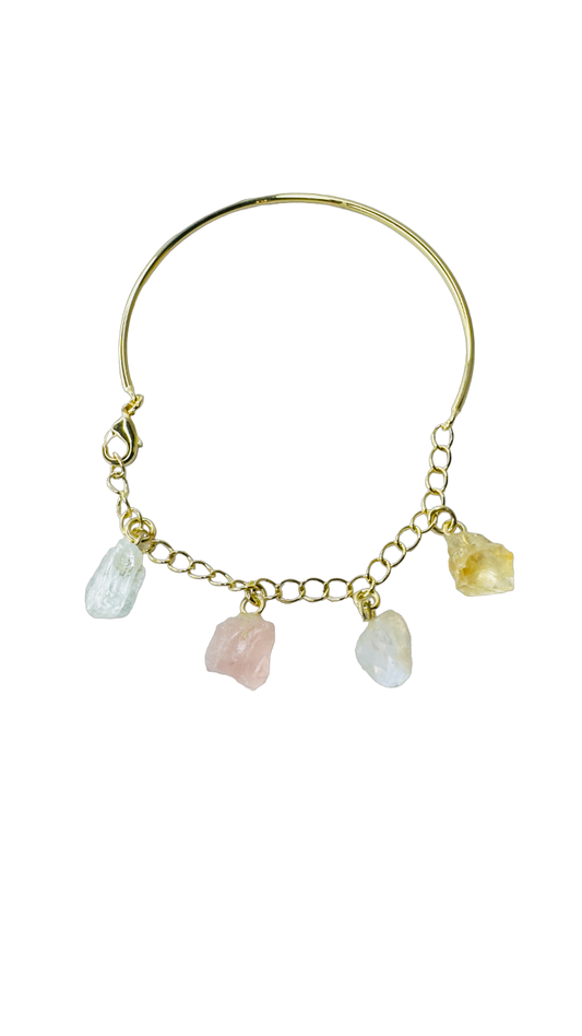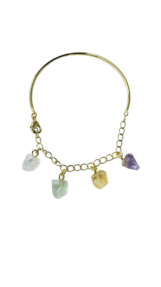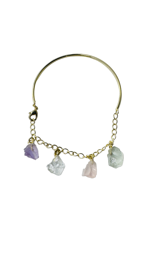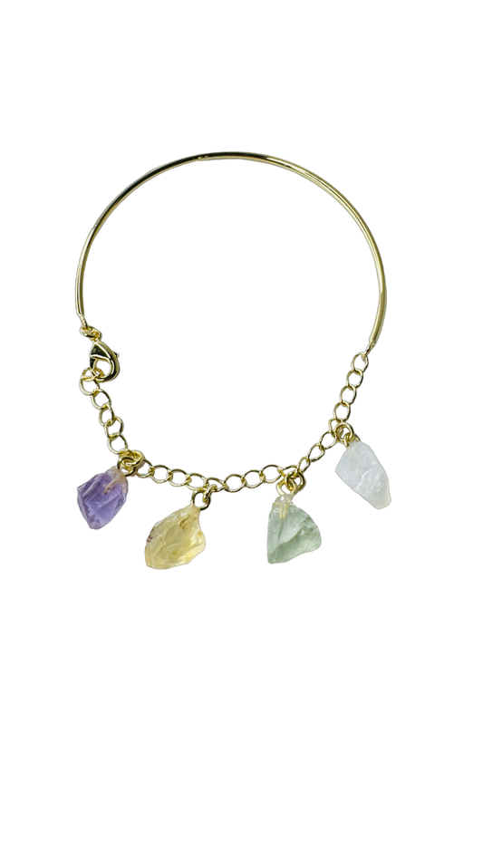 Gold Plated Bracelet Quartet - Quartzo Rosa (Rose Quartz), Citrino (Citrine), Ametista (Amethyst), and Cristal de Rocha (Rock Crystal)