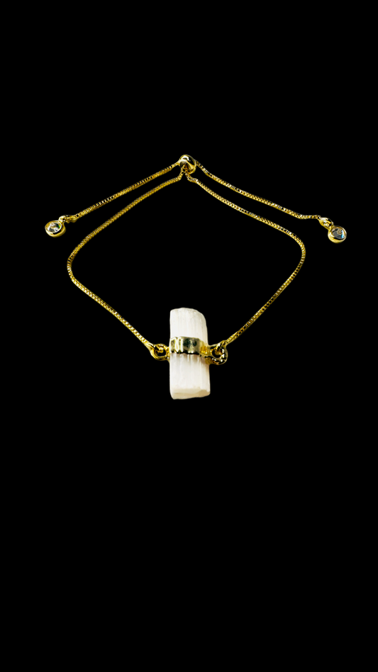 Gold Plated Stone Trio Tie Bracelet with Selenita Branca (White Selenite) and Two Zirconia Points of Light