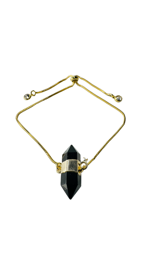 Gold Plated Stone Trio Tie Bracelet with Turmalina Negra (Black Tourmaline) and Two Zirconia Points of Light