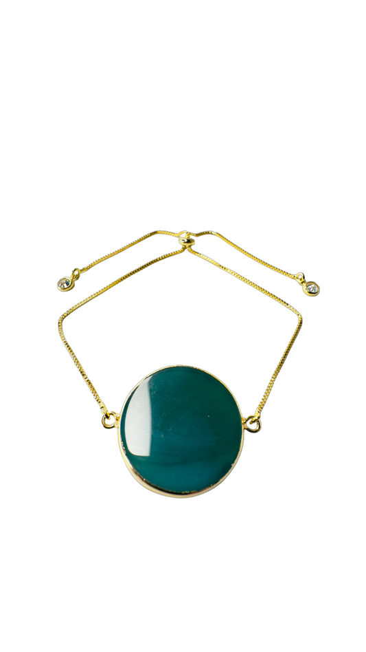 Gold Plated Stone Trio Tie Bracelet with Ágata (Agate) and Two Zirconia Points of Light