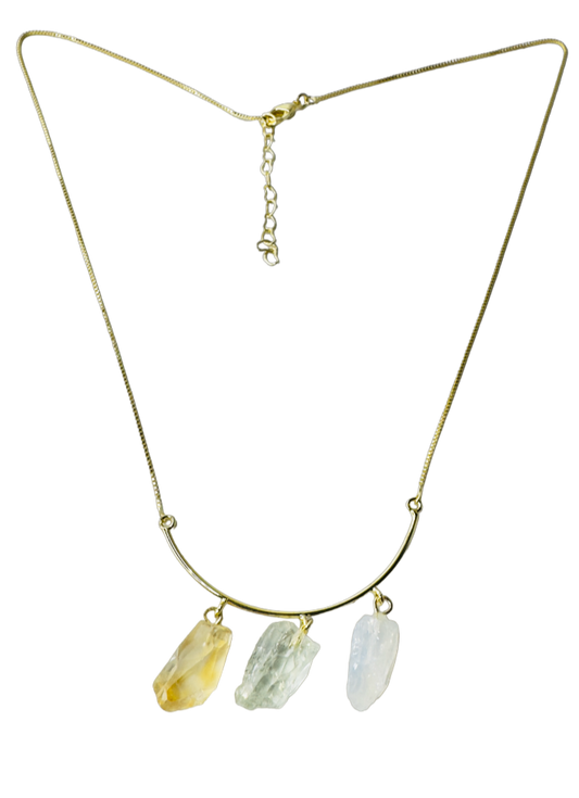 Half Moon Gold Plated Necklace Trio - Citrino (Citrine), Prasiolita (Prasiolite), and Cristal Milk (Milky Quartz)