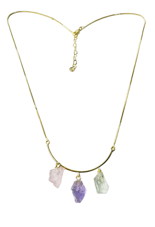 Half Moon Gold Plated Necklace Trio - Quartzo Rosa (Rose Quartz), Ametista (Amethyst), and Prasiolita (Prasiolite)