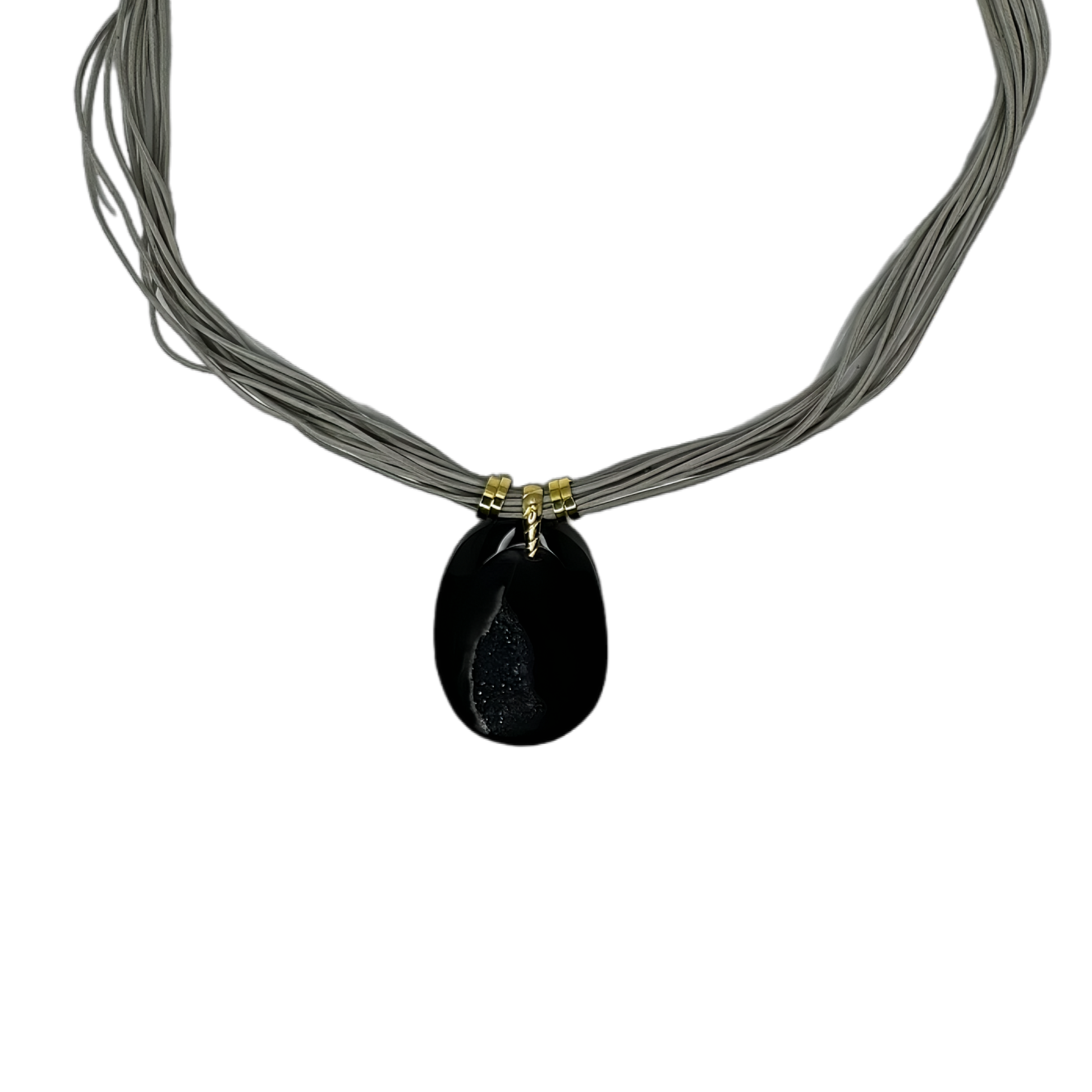 Drusa de Ágata (Agate Druzy) Cotton String Necklace