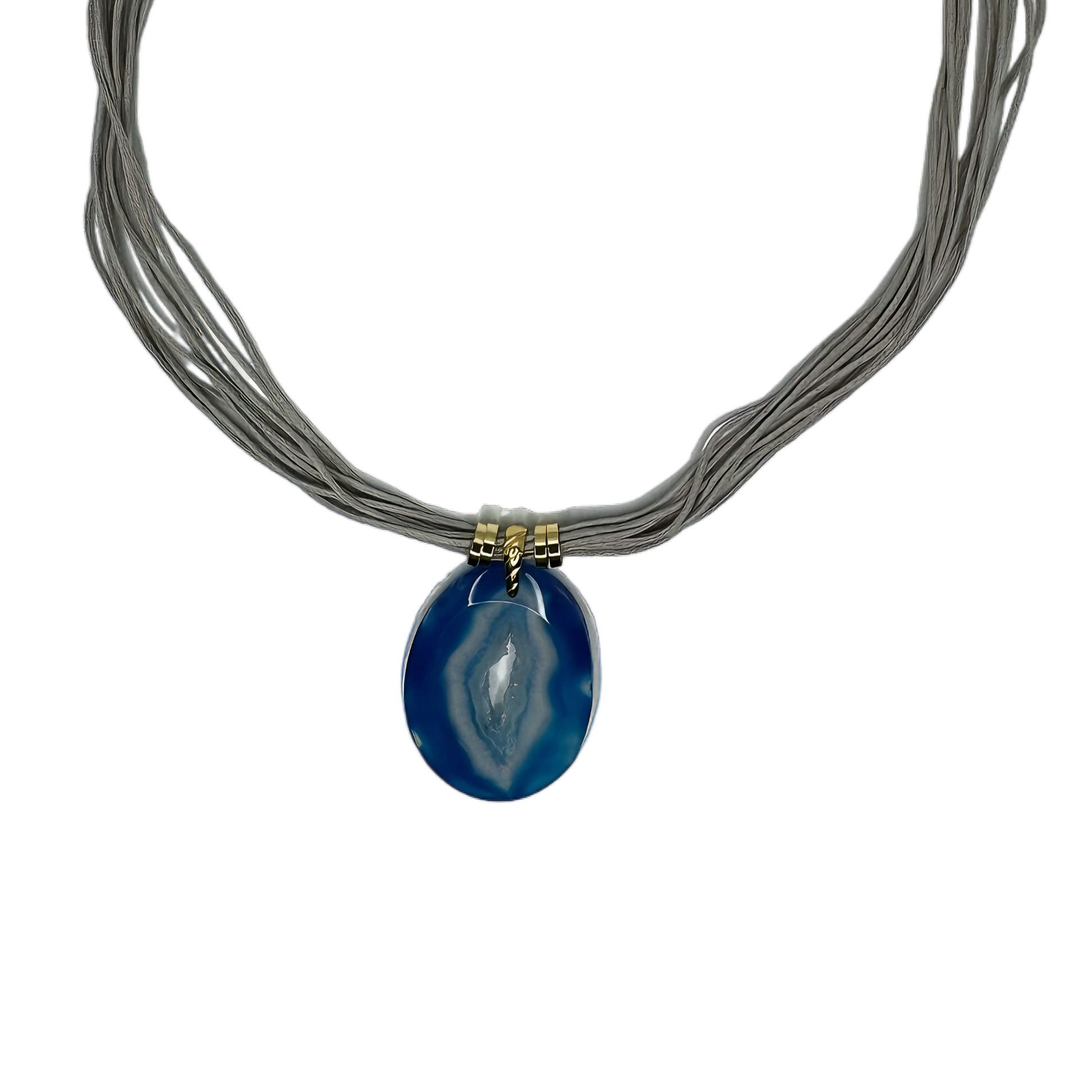 Colar Famibeach Brasileira Drusa de Ágata (Ágata Druzy) - Colar de Fio de Algodão