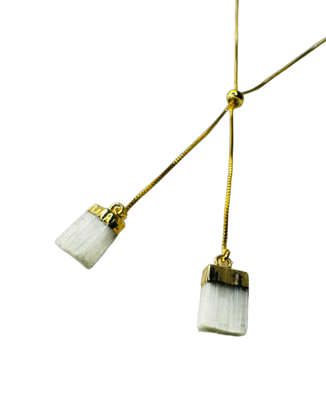 #FamibeachJewelry #TwoStonesNecklace #SelenitaBranca #WhiteSelenite #DivineElegance #ElevateYourStyle