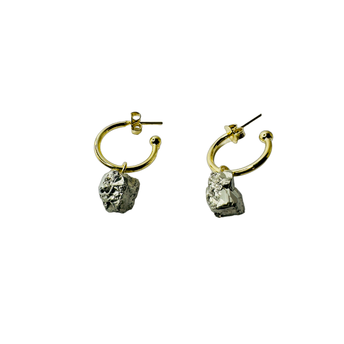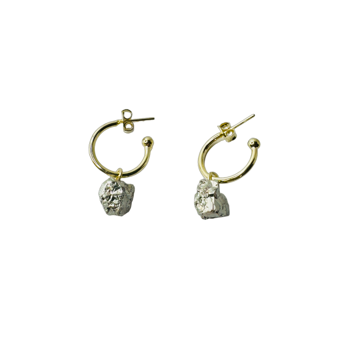 Brinco de argola Famibeach de pedra natural brasileira Pirita (pirita) - banhado a ouro