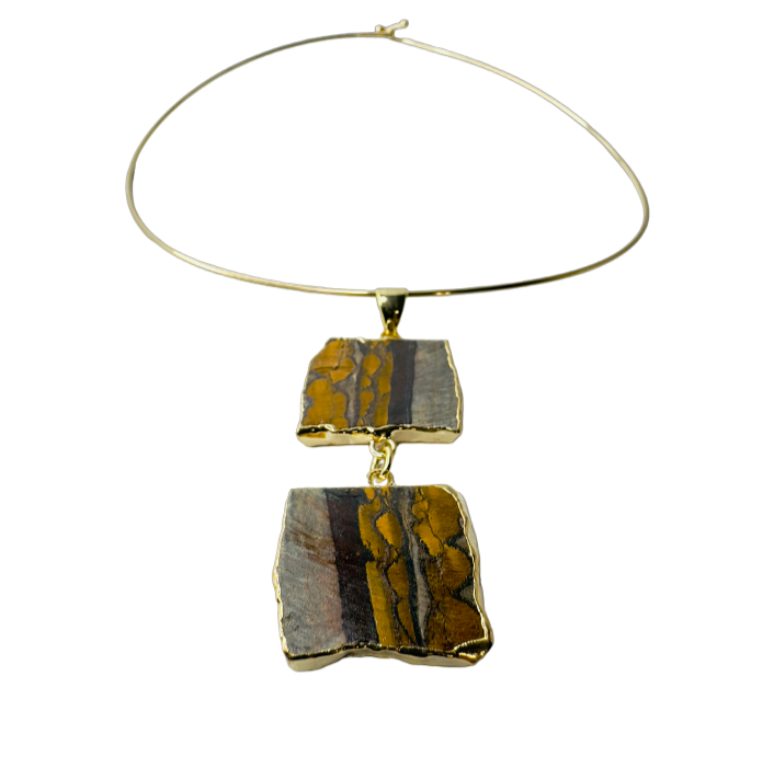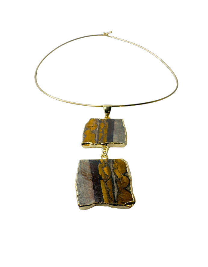 #FamibeachJewelry #BrazilianTigersEyeColar #GoldPlatedNecklace #TimelessElegance